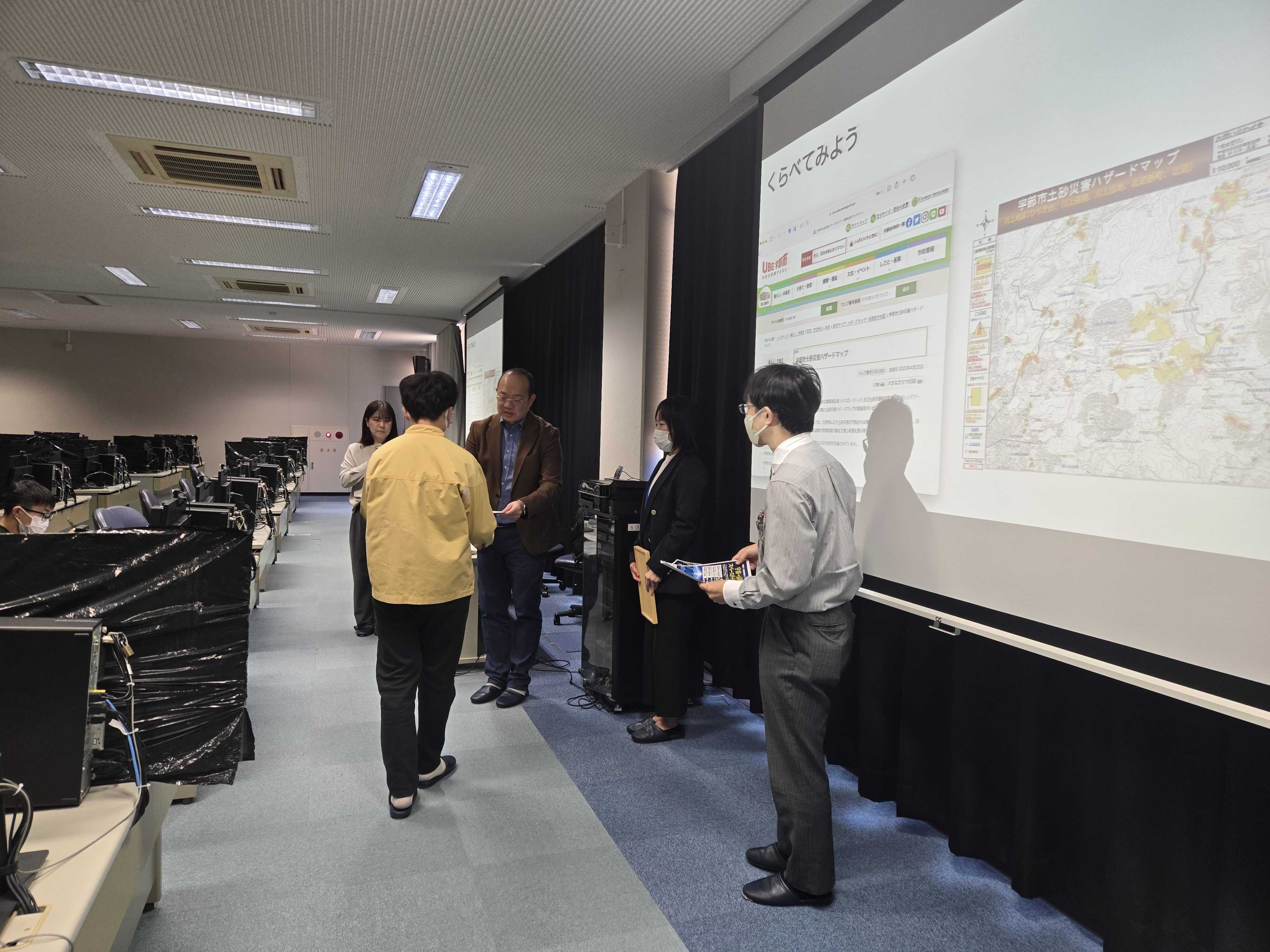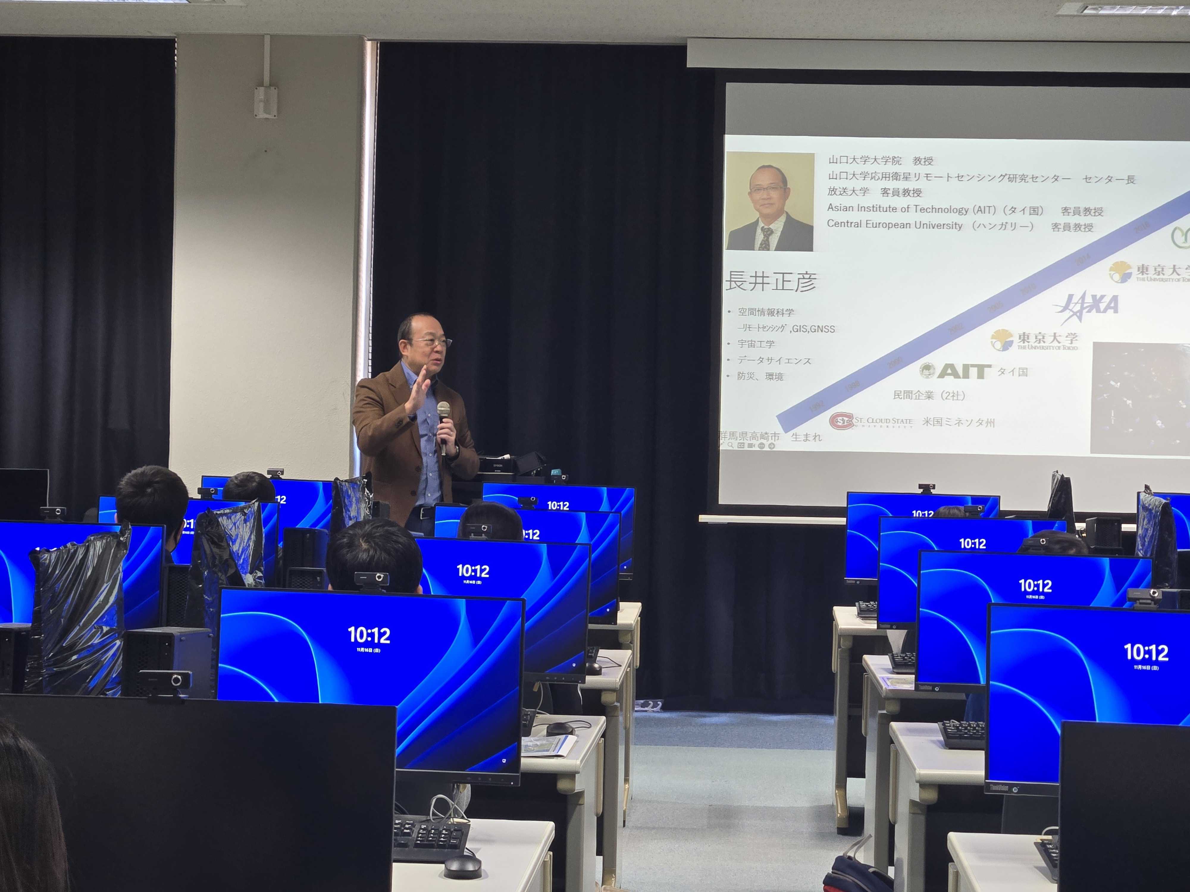 Ten junior high school students from Yamaguchi Prefecture participated in the program, where they received lectures and hands on training on the use of open data and satellite data.